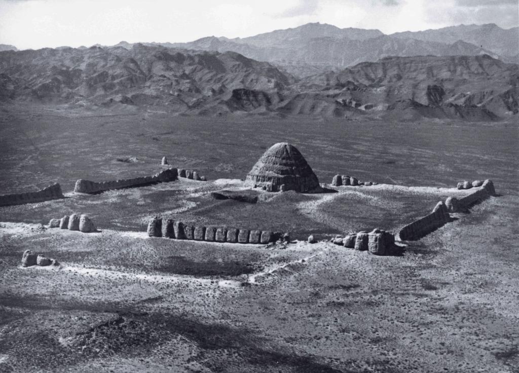这是20世纪30年代,德国飞行员卡斯特飞越宁夏贺兰山时拍摄的西夏陵3号陵(资料照片)。新华社发
